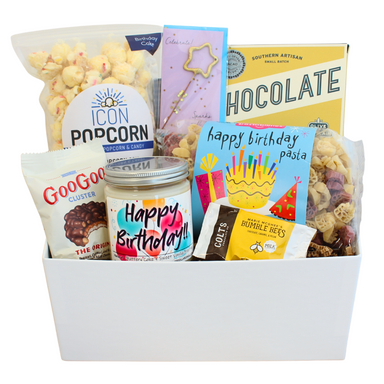 Birthdays are meant to be celebrated! Send our Birthday Celebration Gift Box near or far..Includes: Birthday Cake Gourmet Popcorn Dark Chocolat...