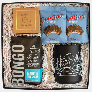 A well-rounded variety of Nashville’s best from Hot Chicken to Biscuits and Jam, chocolates, cookies, and a couple Nashville skyline coasters to r...