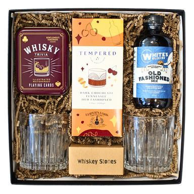 Choose from a small or large gift set in the drop down. A fun way to gift a little Old Fashioned cocktail in a gift box. Just add Bourbon. 2 O...