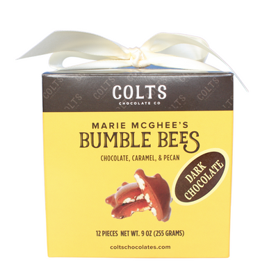 Gift box of 12 individually wrapped Bumble Bee Chocolates from Colt's Chocolate in Nashville, TN. Layers of buttery salted caramel and crisp premi...