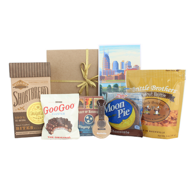 Welcome folks to Nashville with the ultimate Honky Tonk gift box filled with snacks and keepsake souvenirs all made or designed in the great state...
