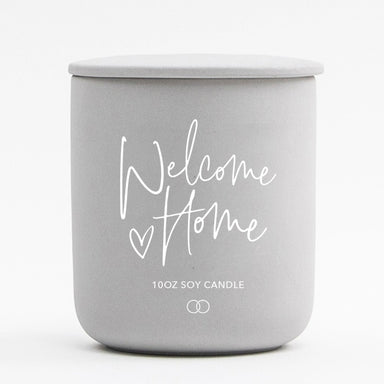 This WELCOME HOME ceramic candle is filled with a warm vanilla soy wax. This 10oz light gray ceramic soy candle is the perfect piece to add to a ne...