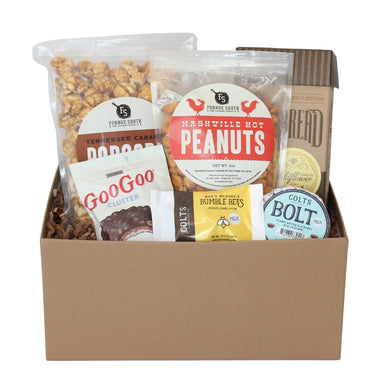 Welcome folks to Nashville with the ultimate Honky Tonk gift box filled with snacks and keepsake souvenirs all made or designed in the great state...